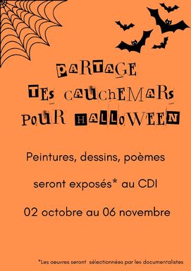 Du 02 octobre au 6 novembre expose tes œuvres les plus effrayantes au CDI (peintures, dessins, poèmes).